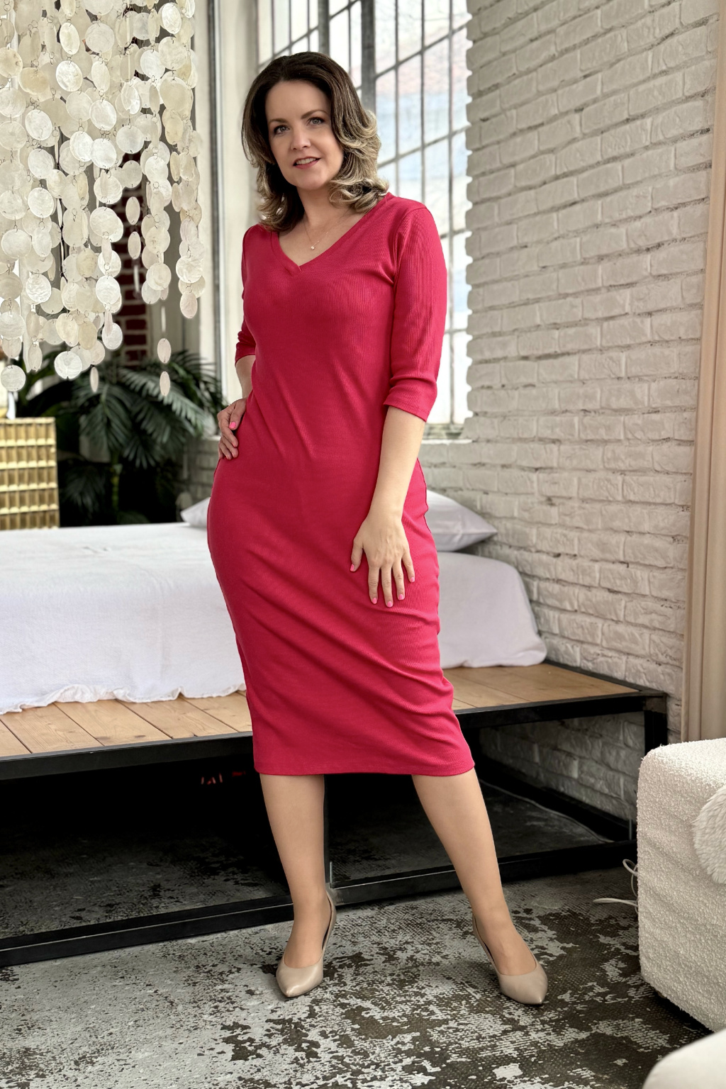 Hrubší úzké žebrované šaty Klasik - karmínová - krátké / midi - 2 týdny