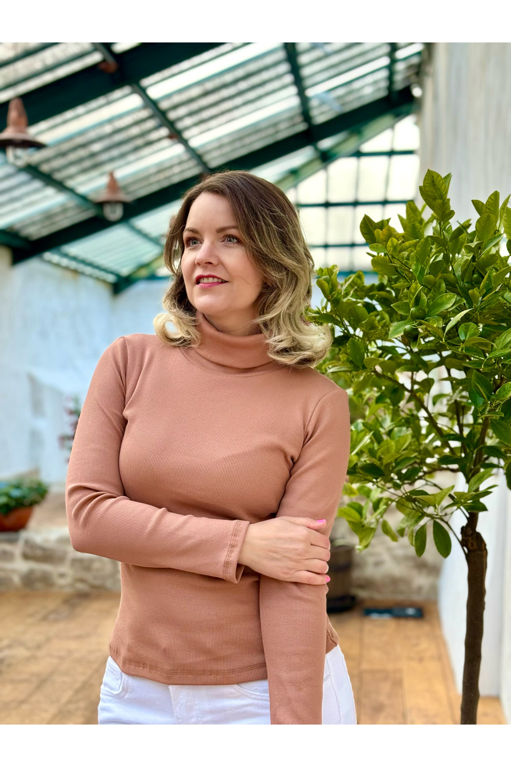 Hrubší žebrovaný bio bavlněný rolák - mocha