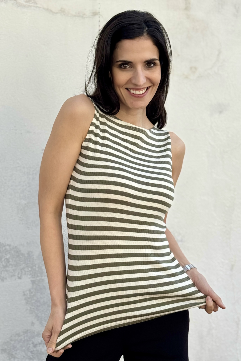 Proužkované tričko Ava - olivovo-smetanová