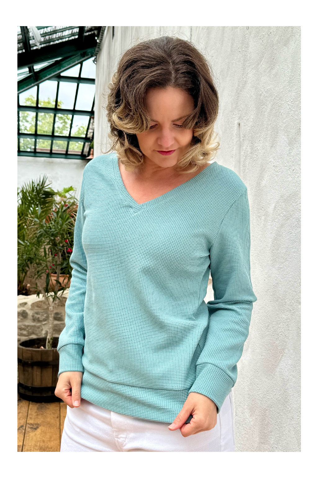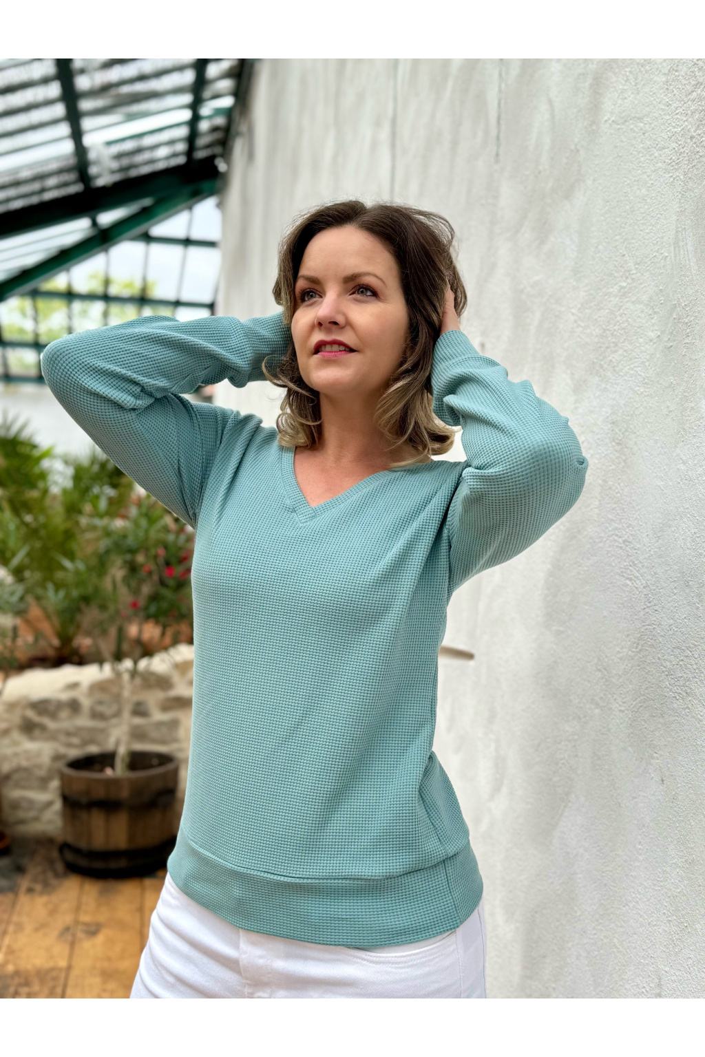 Vaflová bio bavlněná mikina - Zarina - mentolová