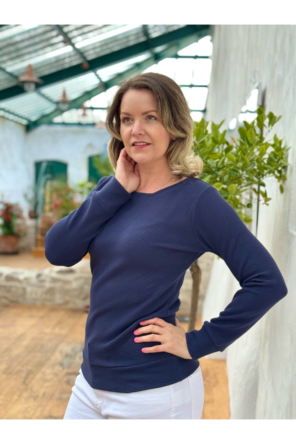 Vaflová bio bavlněná mikina - Zarina - námořnická modrá