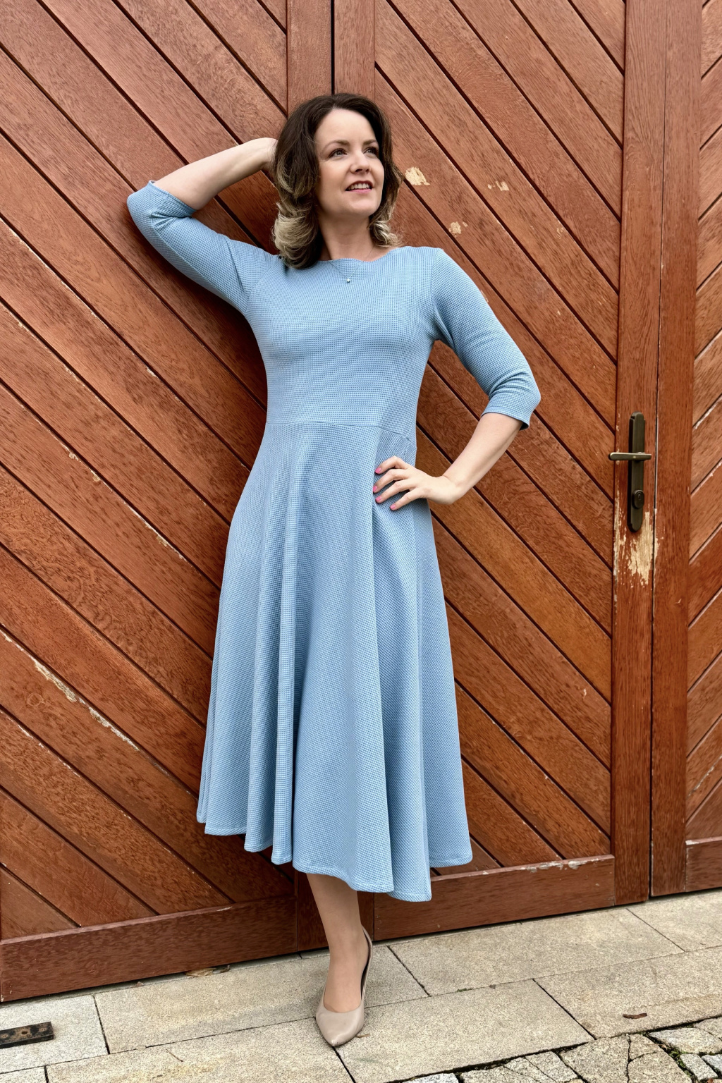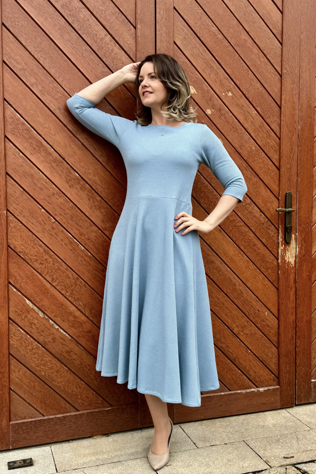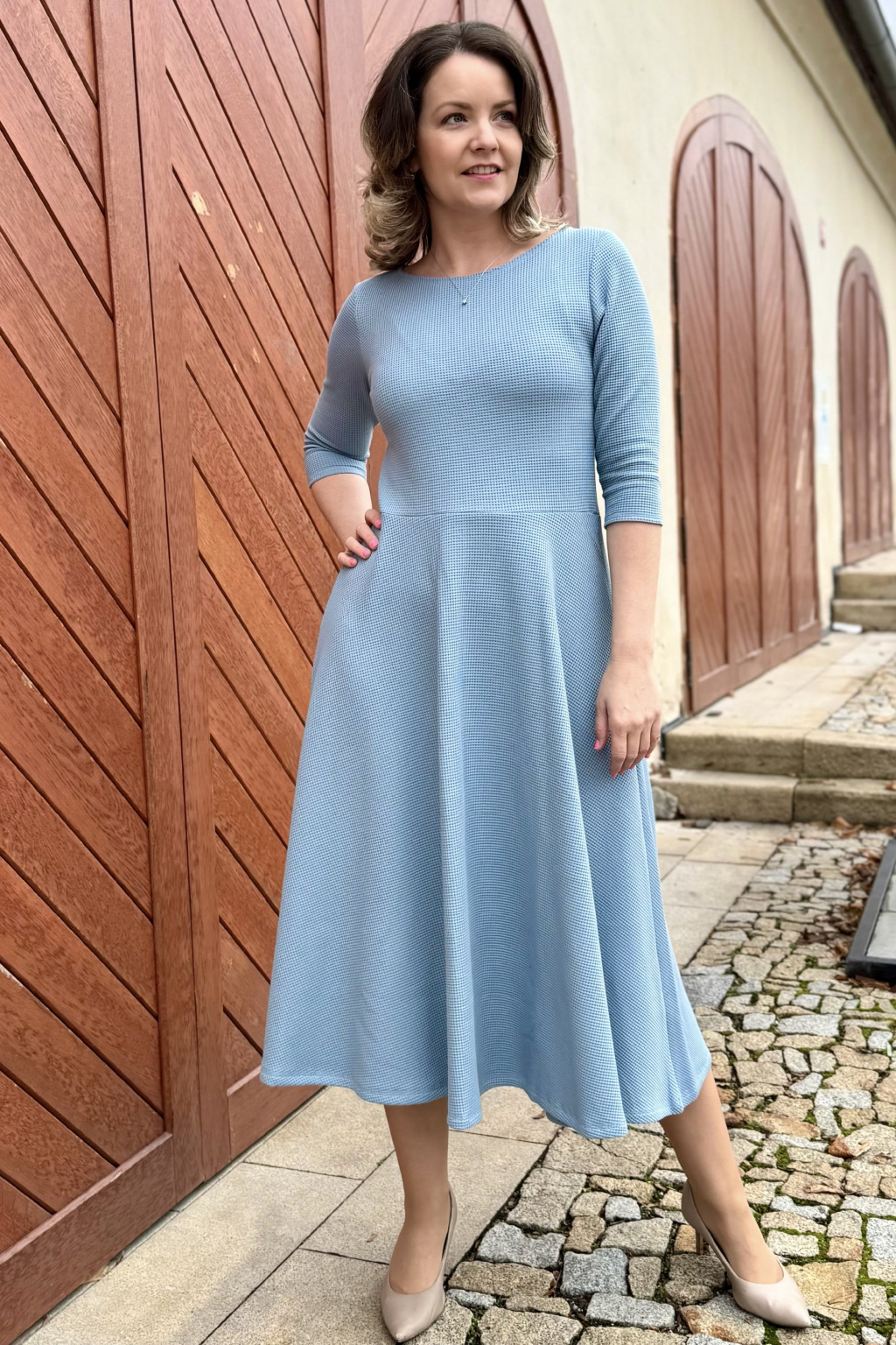 Vaflové bio bavlněné šaty Klasik - Zarina - světle modrá - krátké / midi