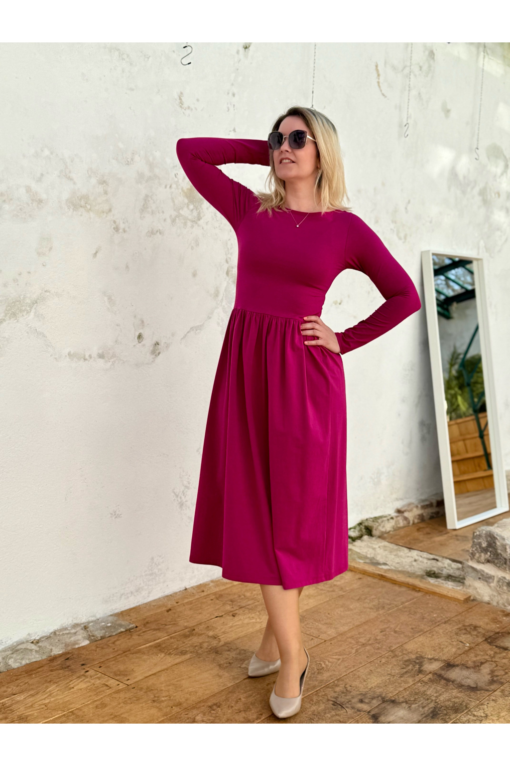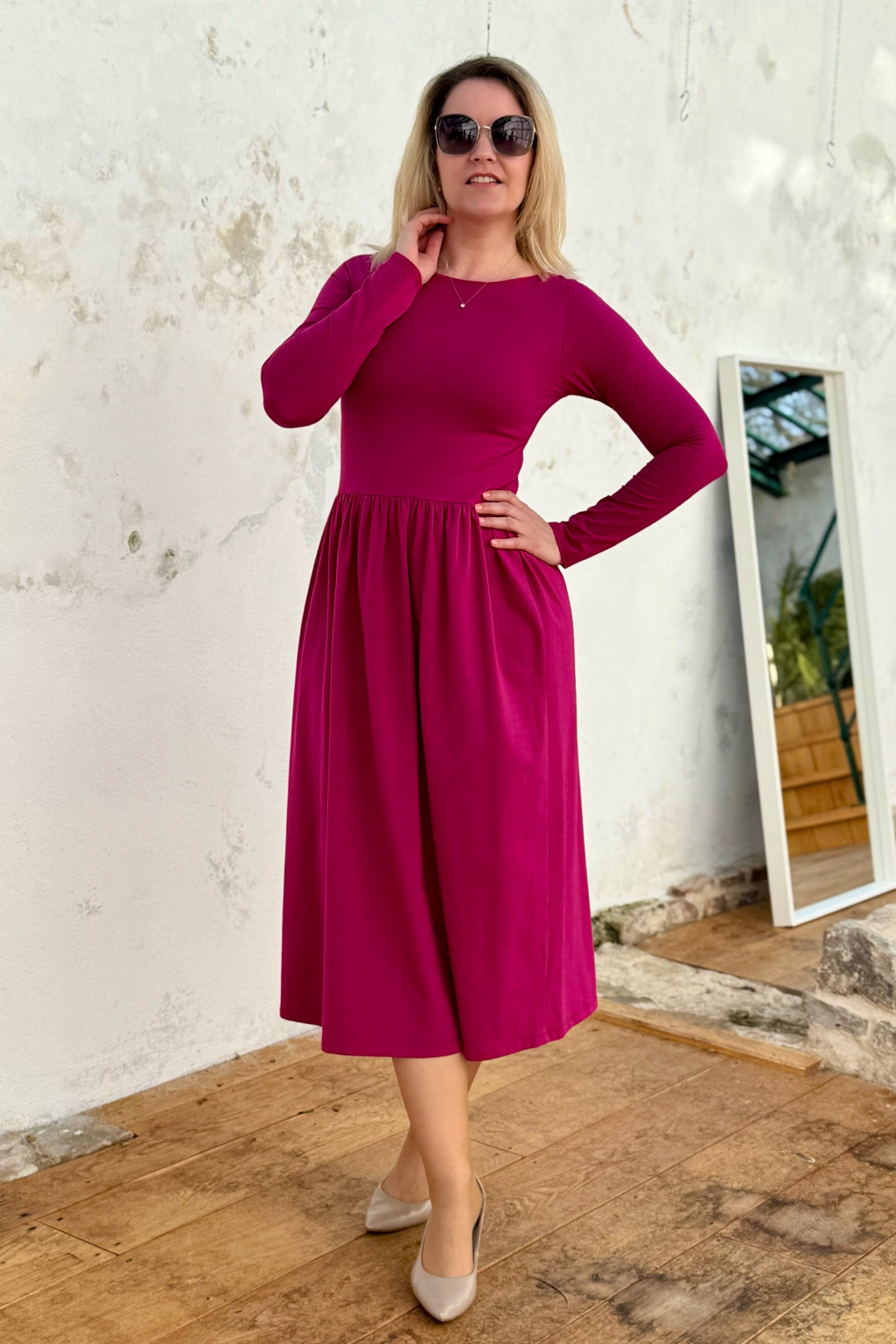 Bio bavlněné šaty Klasik - cyklamenová - krátké / midi