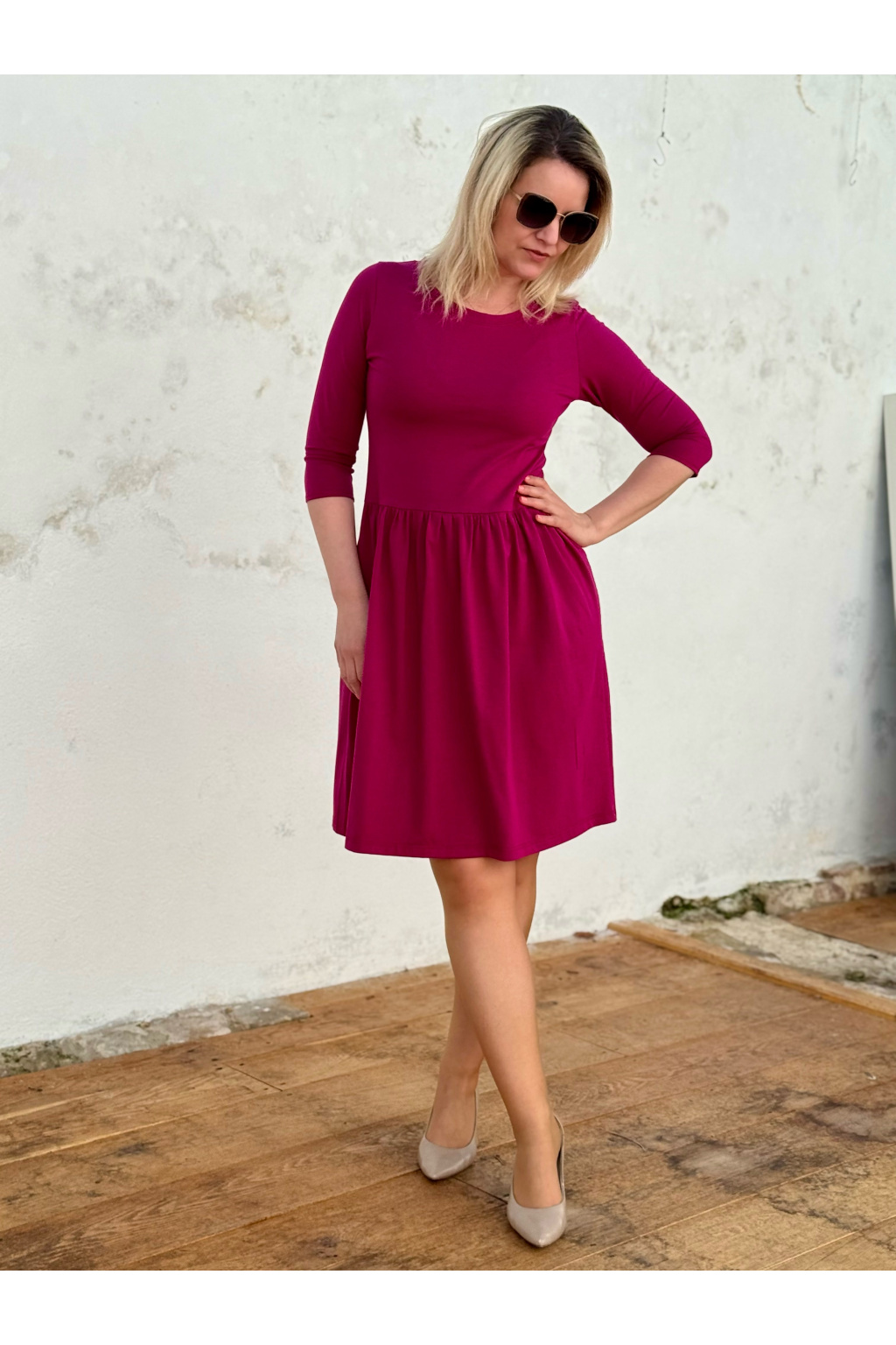 Bio bavlněné šaty Klasik - cyklamenová - krátké / midi
