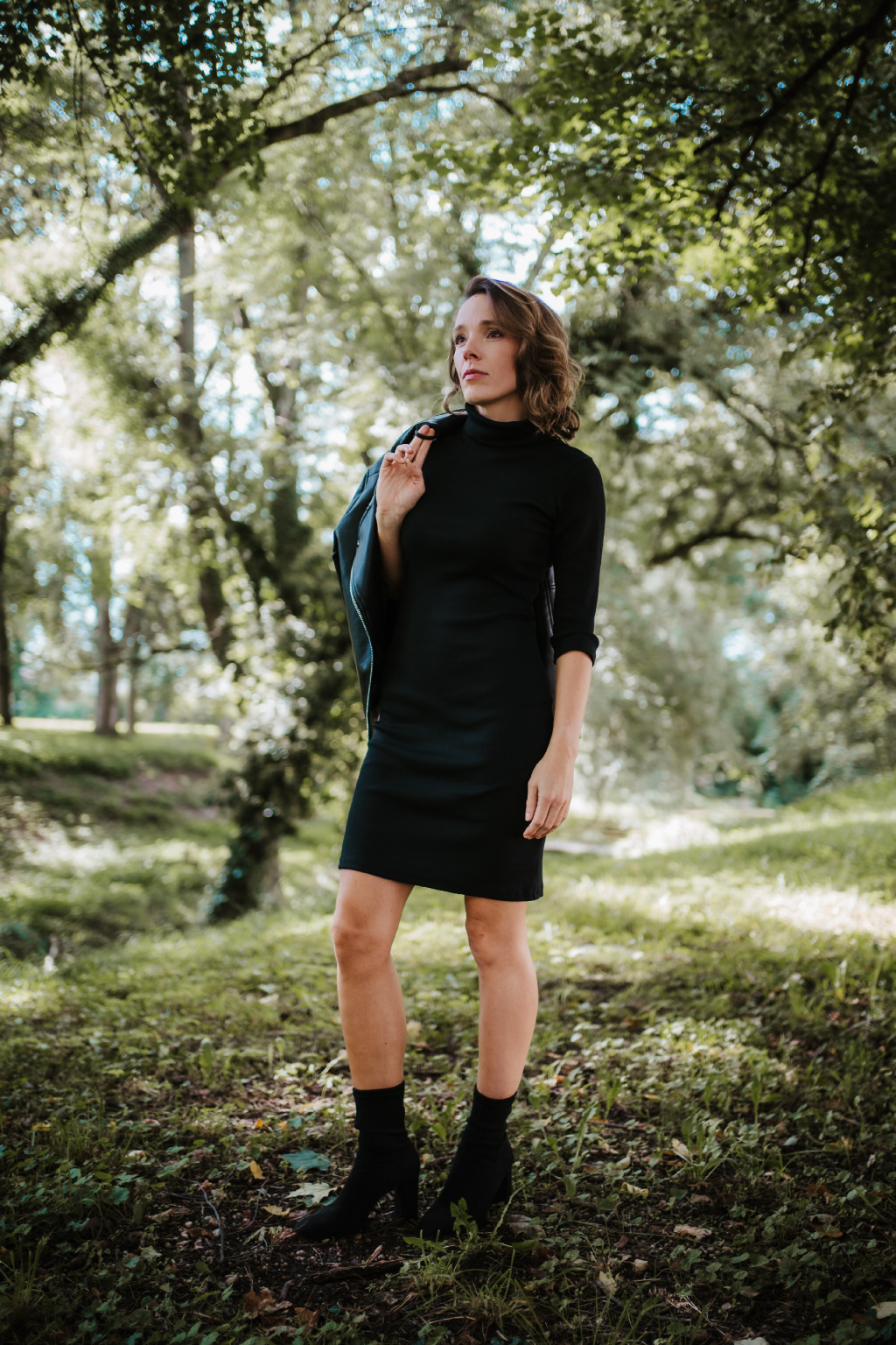 Hrubší úzké žebrované šaty Gill - černá - krátké / midi