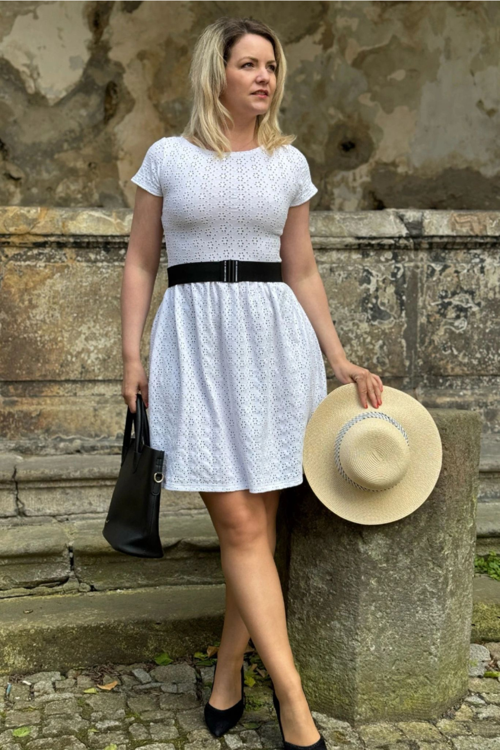Madeirové šaty Klasik - bílá - krátké - vel. XS, XL - 95 cm - skladem