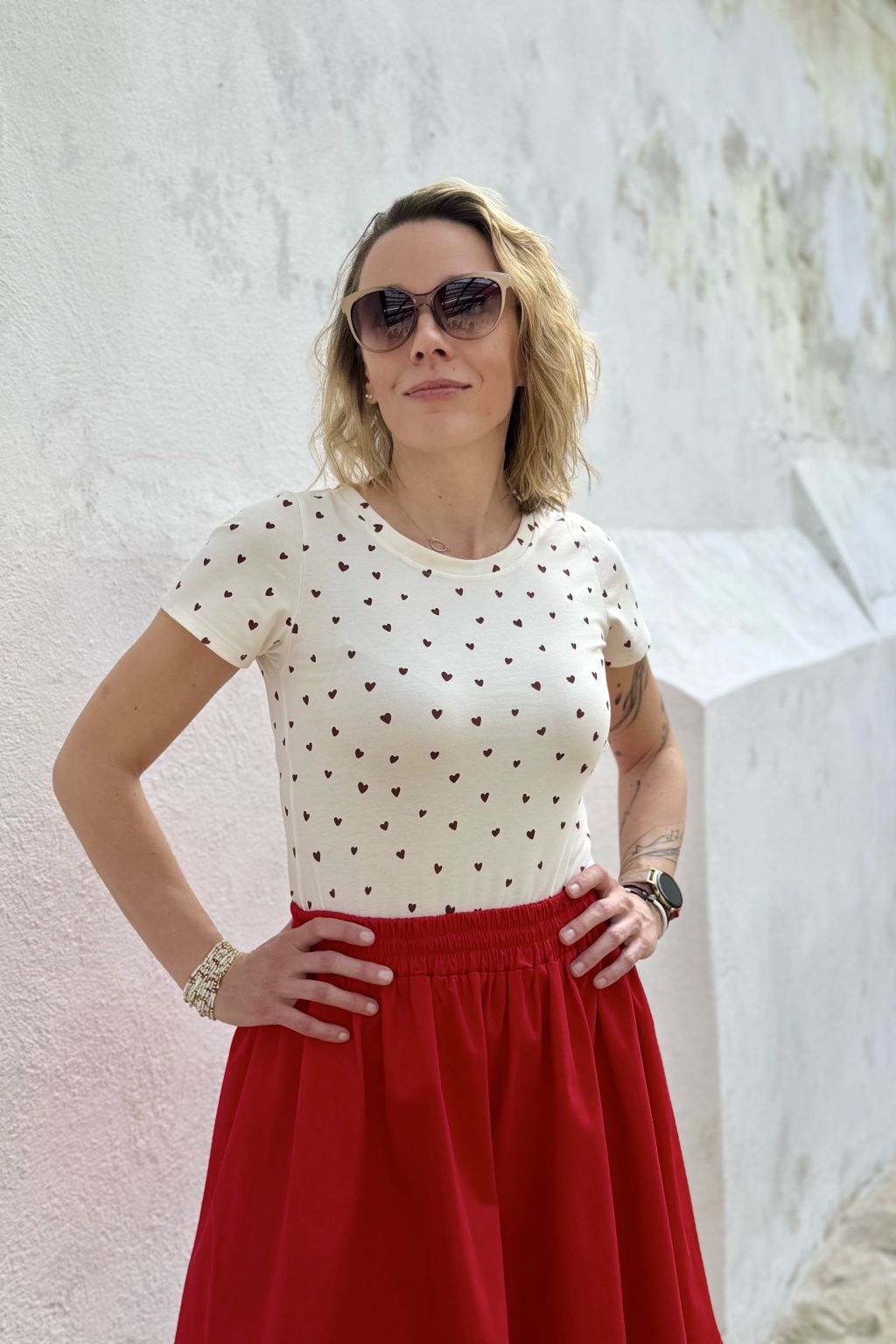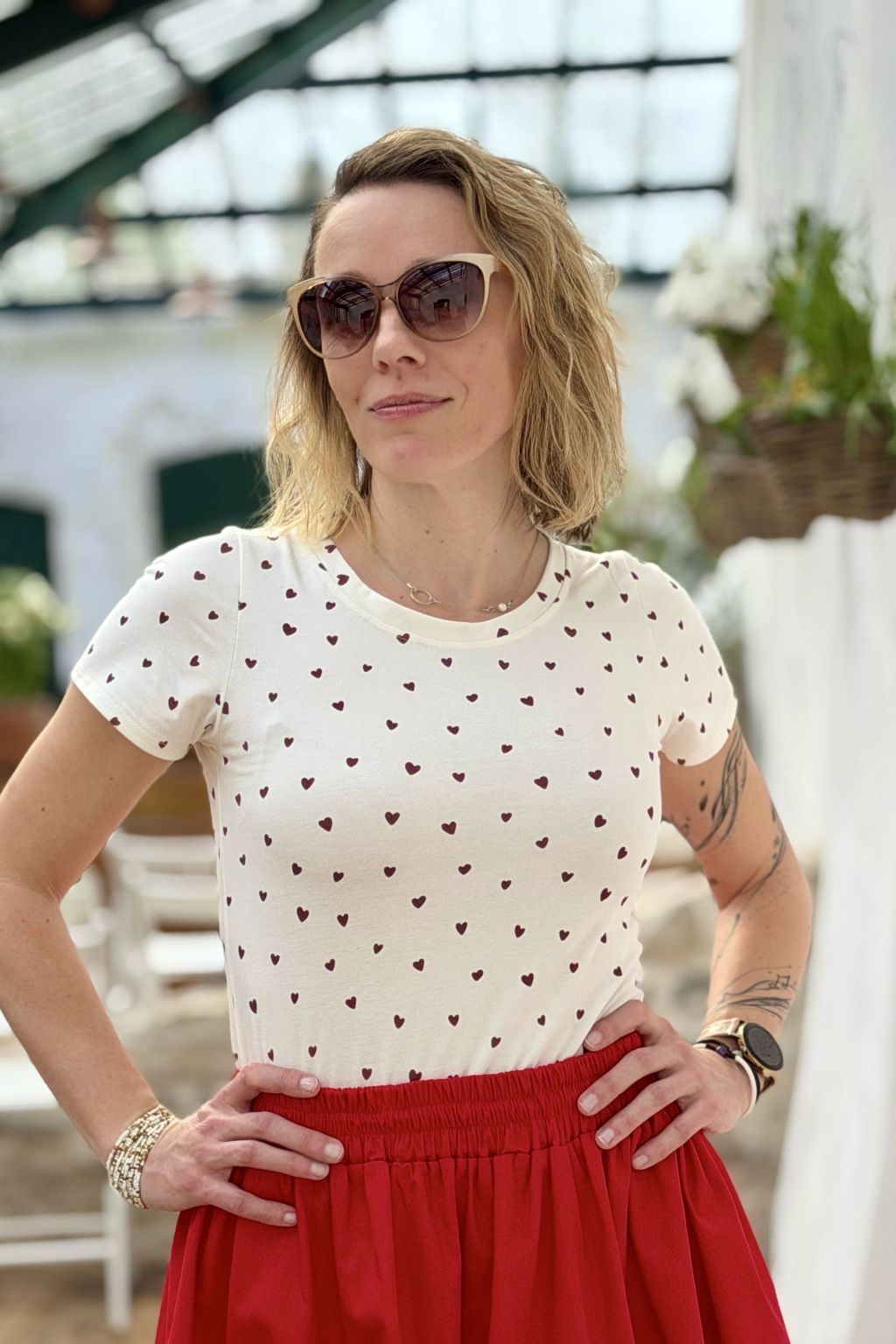 Dyzajnové tričko Klasik - Srdíčka - červená
