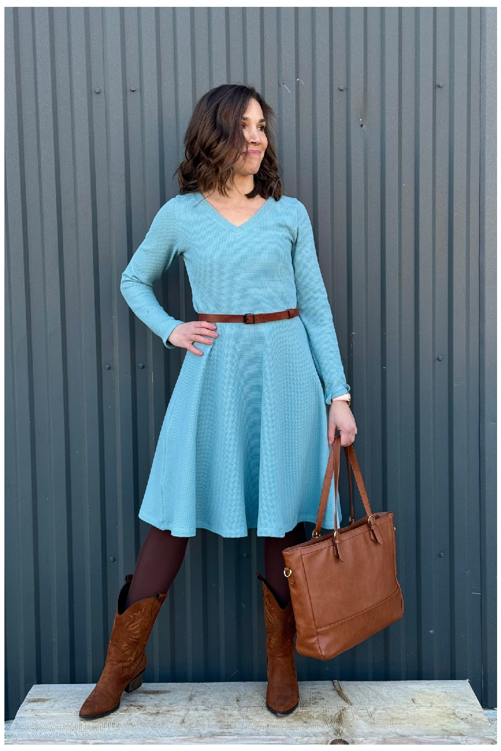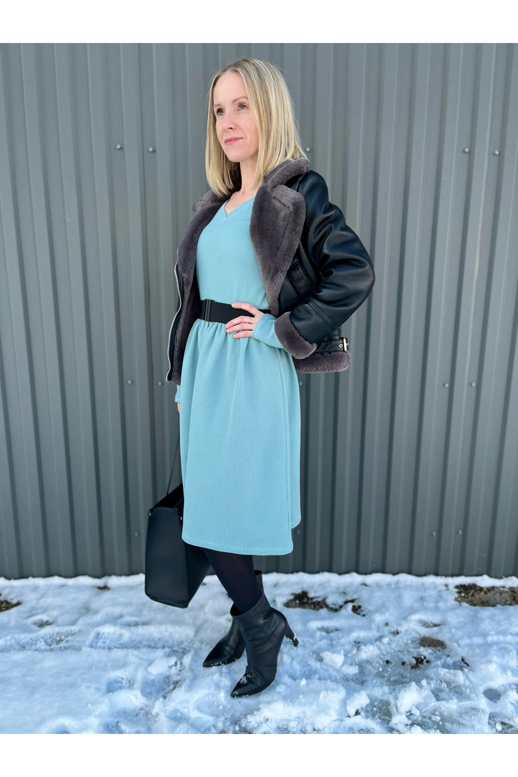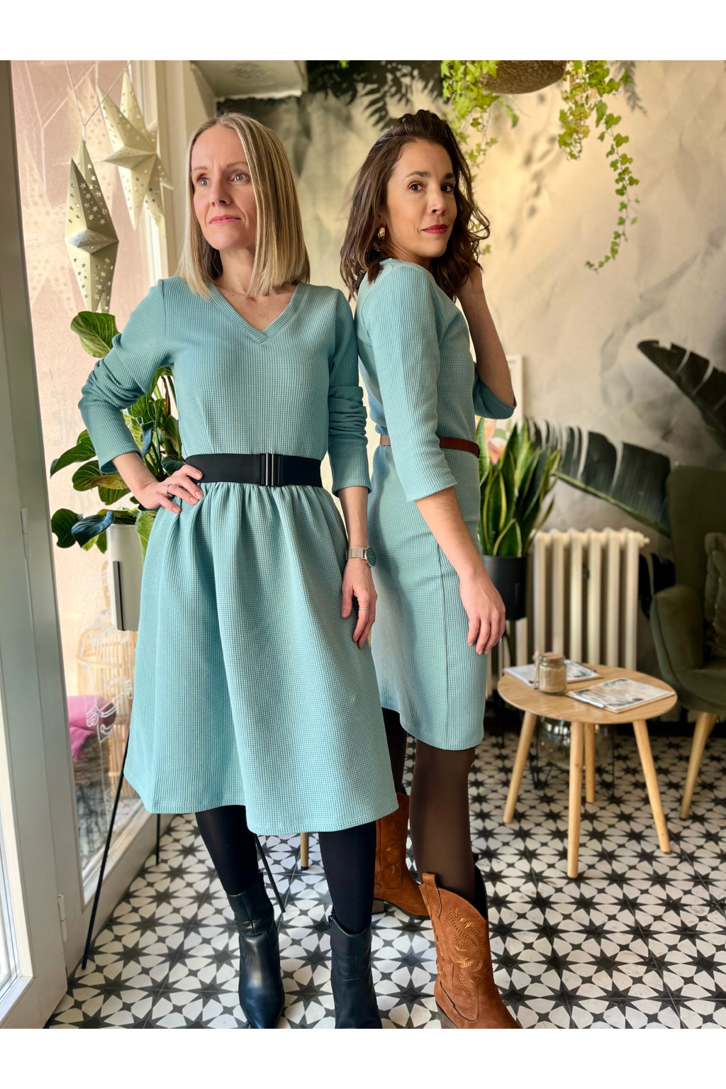 Vaflové bio bavlněné šaty Klasik - Zarina - mentolová - krátké / midi