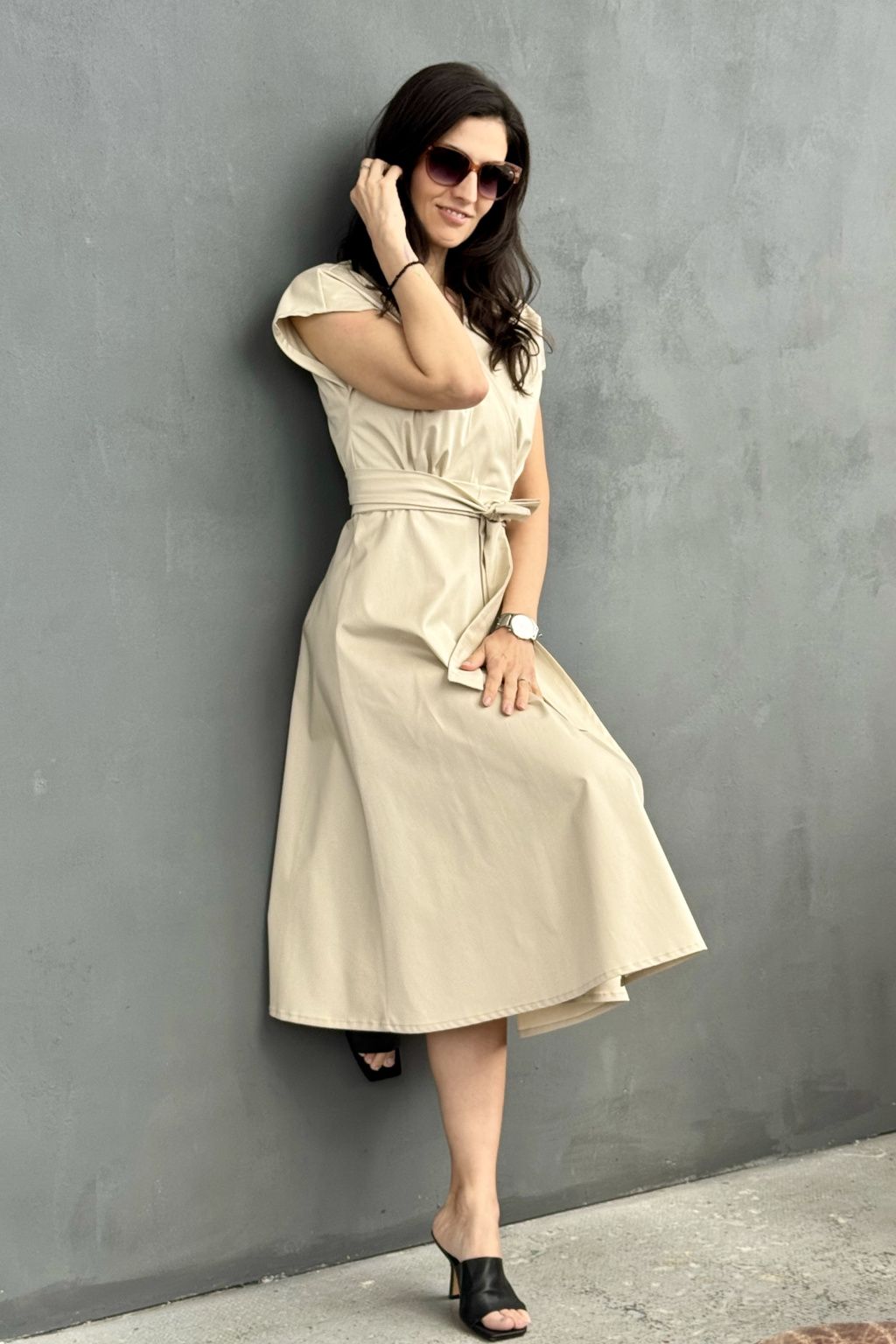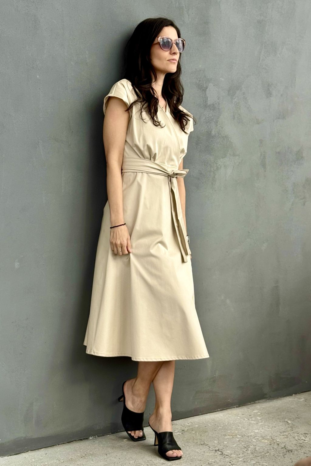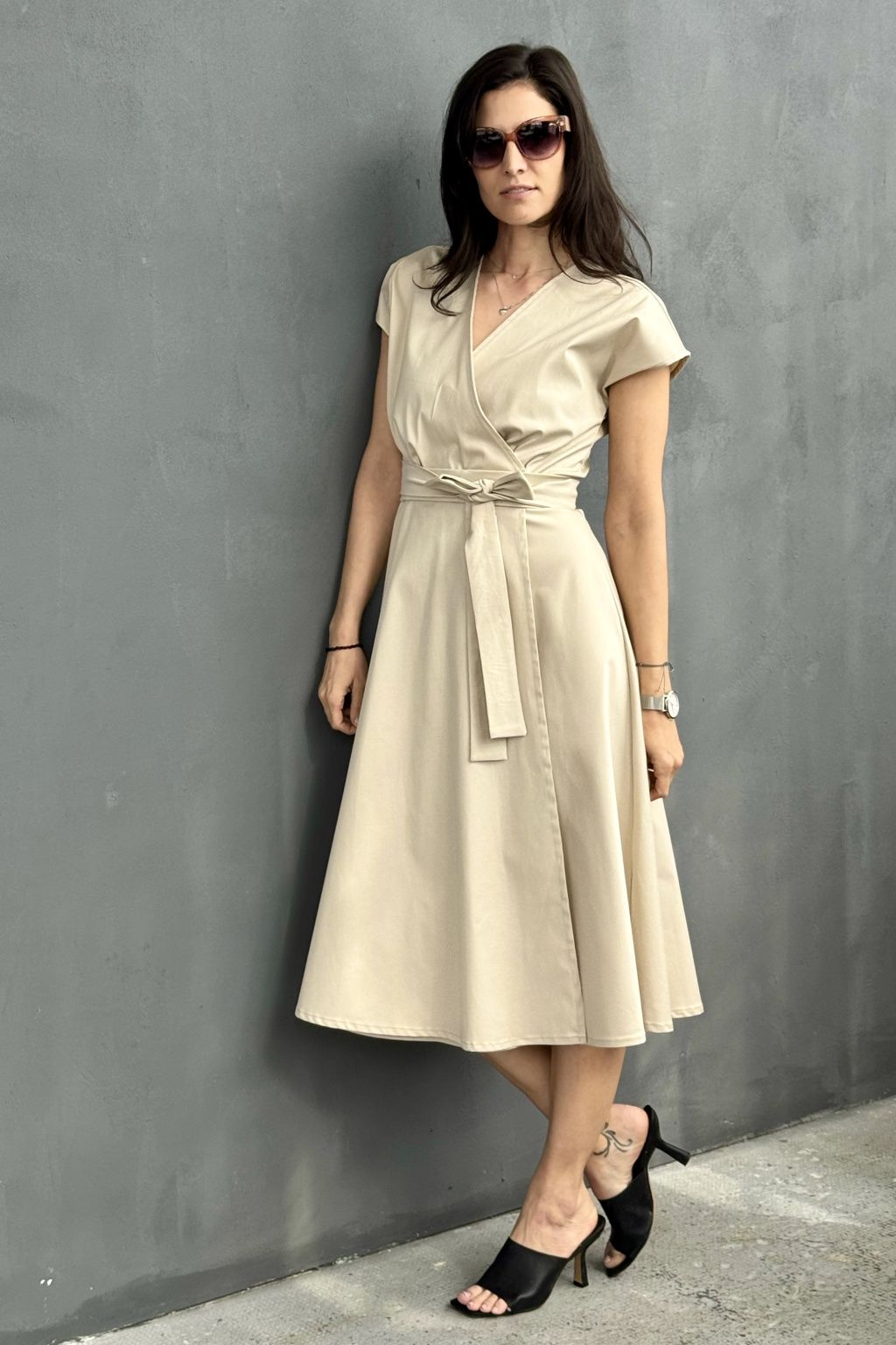 Bavlněné strečové zavinovací šaty Mirabela - písková