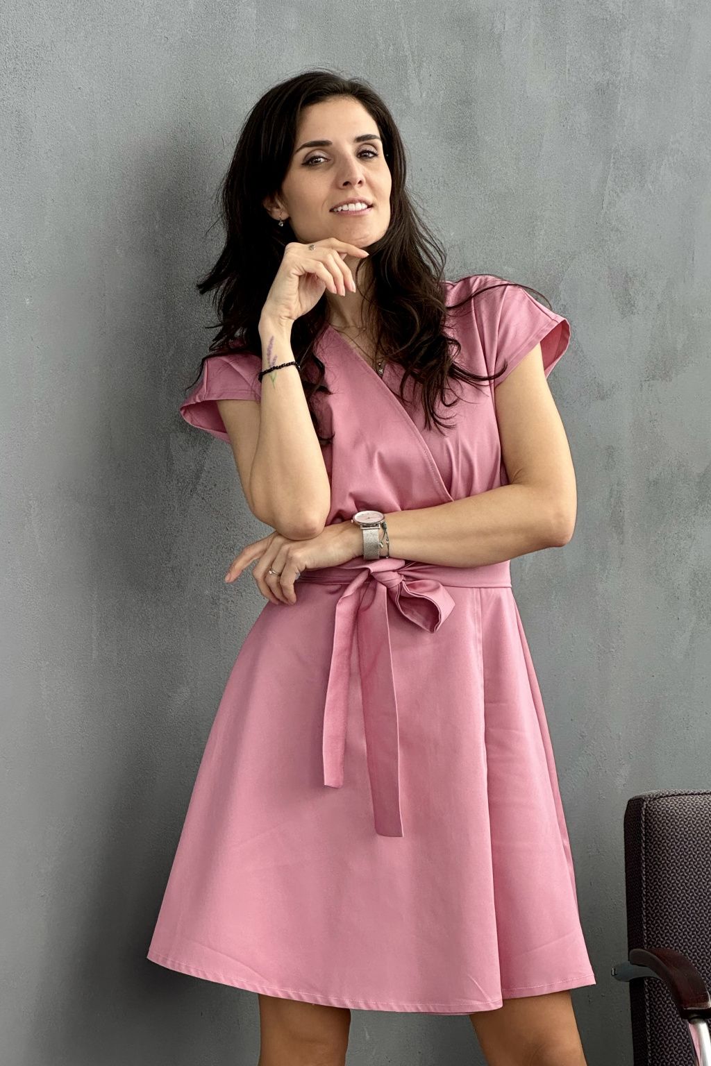 Bavlněné strečové zavinovací šaty Mirabela - světle růžová