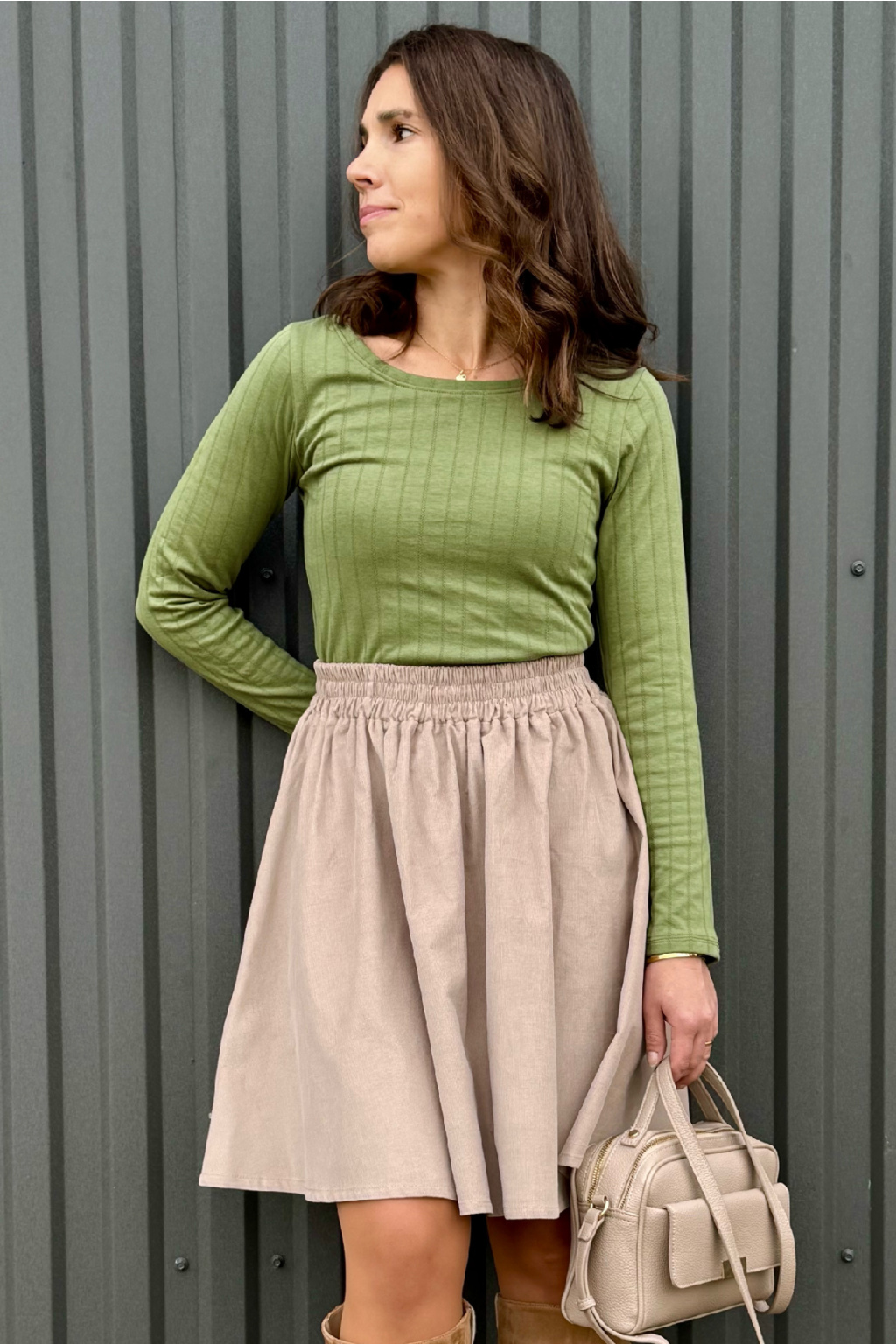 Bio bavlněné tričko Klasik - pointelle - olivová